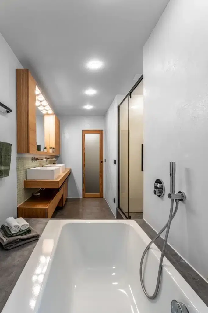Velmi často se v bytě setkáte s praktičností. V případě koupelny je to třeba dvojice umyvadel, levitující nábytek pro snadný úklid nebo třeba USB zásuvky pro dobíjení vybavení pečující o krásu.