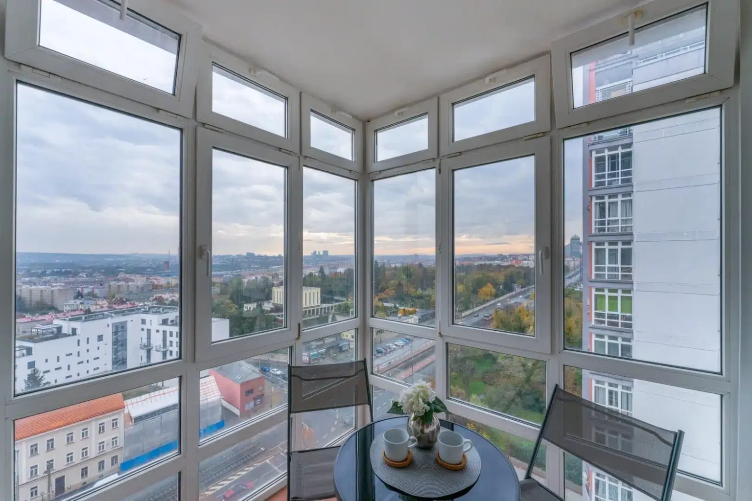 Necelé 4 m² vám dopřejí výhled na město. Díky orientaci si můžete užít překrásné západy slunce. Nám to bohužel tentokrát nevyšlo.