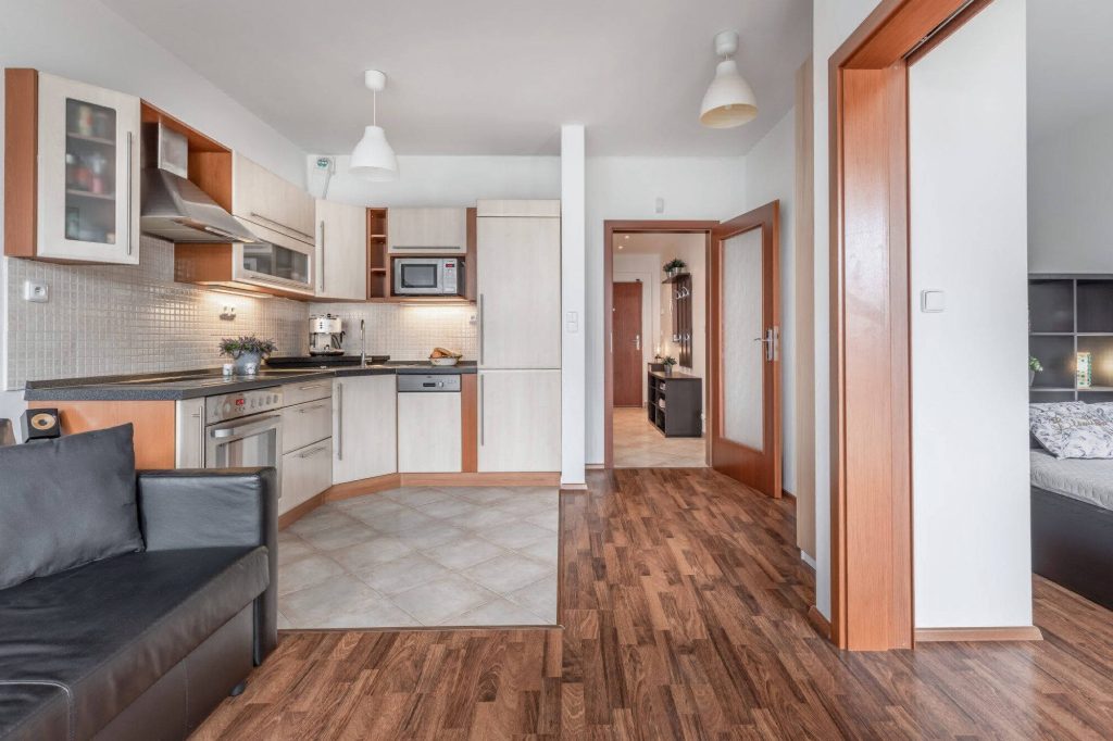 Pohodlný dvojpokojový byt s předzahrádkou se nachází v moderním bytovém domě na okraji pražských Pitkovic. Téměř maloměstský ráz lokality se snadnou dopravní obslužností a občanskou vybaveností na dosah ruky dělá ze slunného bytu skvělé místo pro život, a to pro jednotlivce i pár.