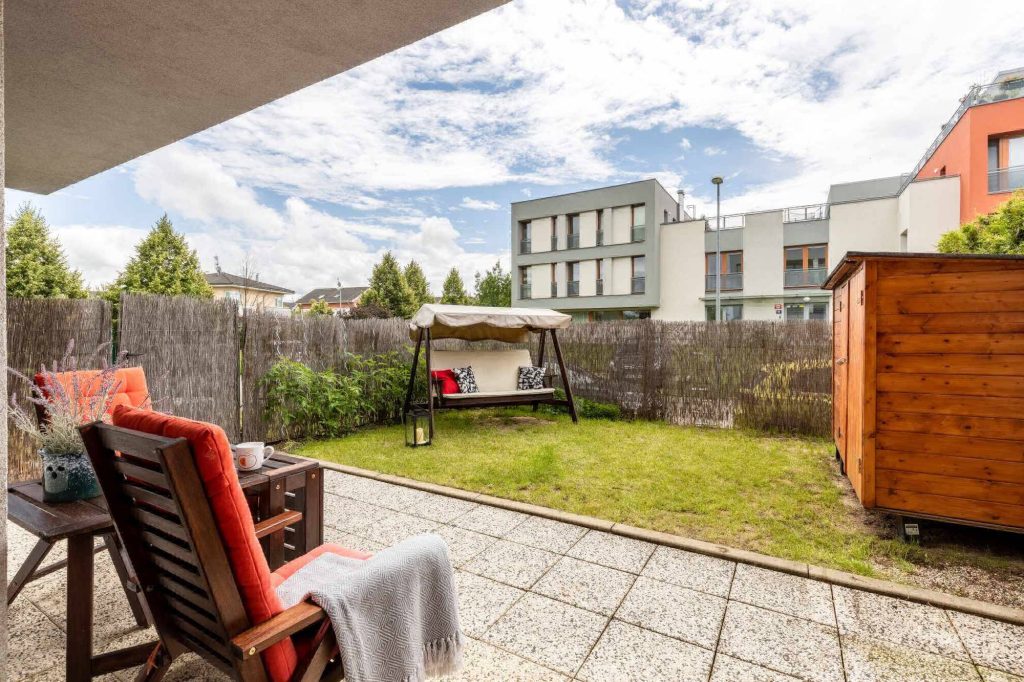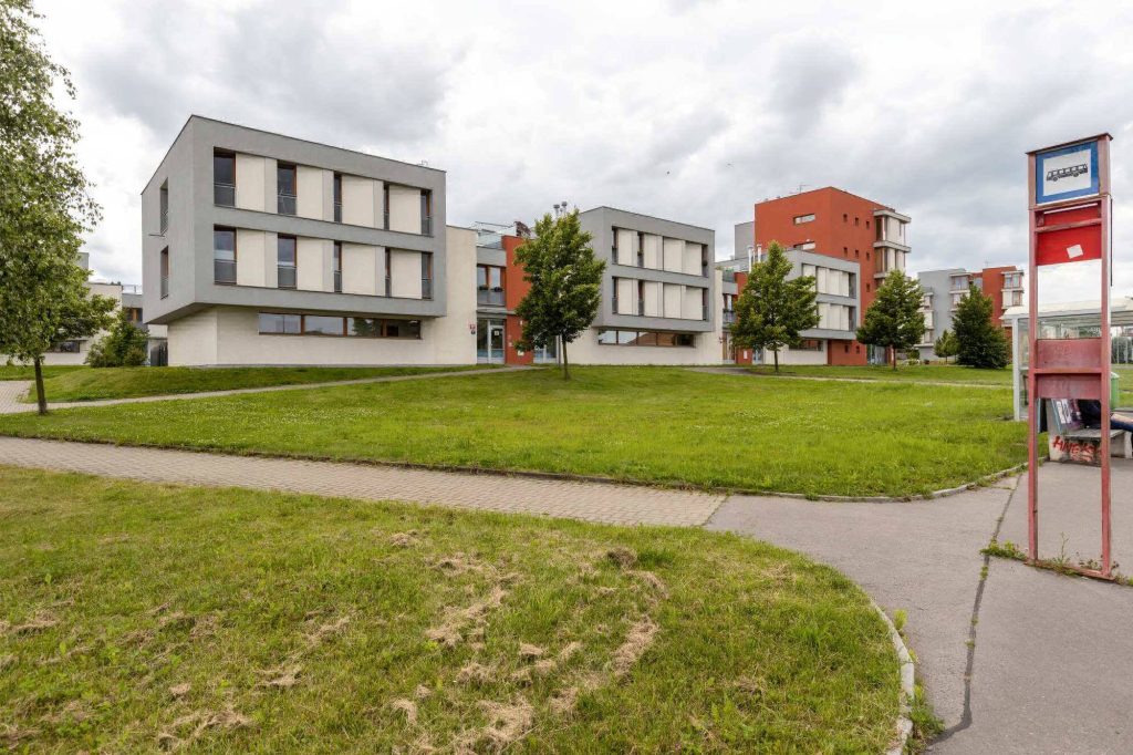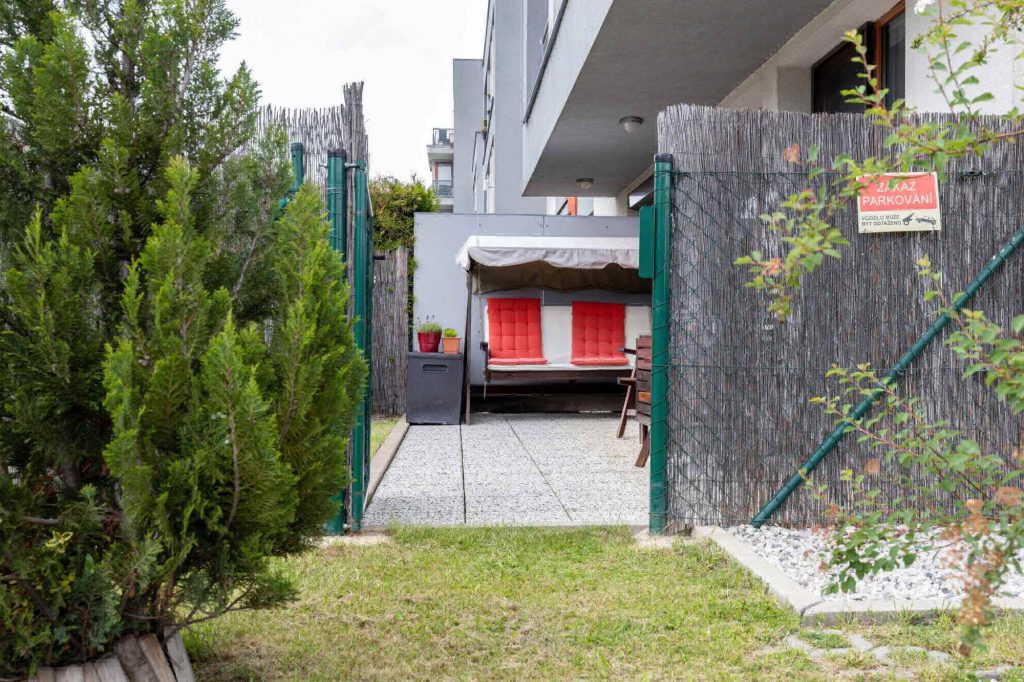 Původně jednopokojový byt, který je vhodný ke klidnému životu i jako nenáročná investice, je rozdělen příčkou na dva pokoje. Kromě velmi dobrého stavu je výraznou předností bytu také čtyřicetimetrová předzahrádka, která nabízí kromě zpevněné terasy s místem k posezení také dřevěný domek na uložení zahradního či jiného vybavení. Z předzahrádky se vstupní branou majitelé přímo dostanou do klidného vnitrobloku, který je veden jako pěší zóna, kde je případně možné zaparkovat vůz. Umístění bytu i jeho předzahrádky je výhodné zejména při každodenním užívání nebo příchodu návštěv.