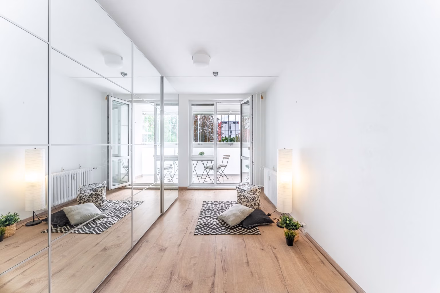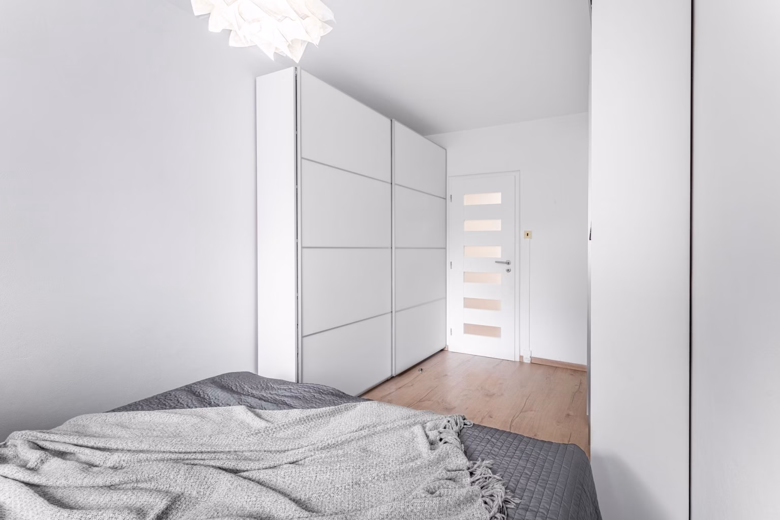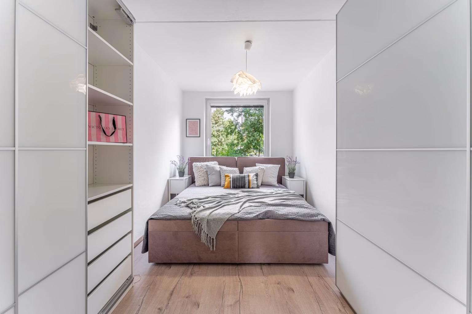 Ložnice je vhodně umístěna do menšího pokoje o velikosti 12 m² a je zařízena skříněmi s úložným prostorem.