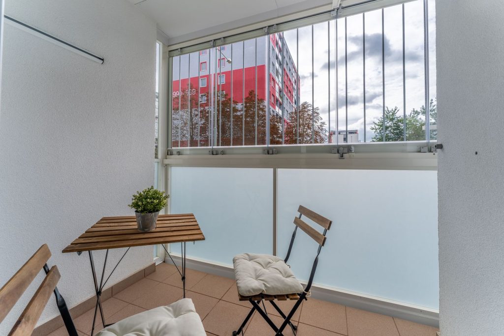Samostatná lodžie byla prodloužena a její rozměry jsou 140 x 220 cm. Je vybavena posuvným zasklením, bezpečnostní mříží a neprůhledným mléčným sklem. Všechny okna jsou ve výšce více než dvou metrů nad terénem.