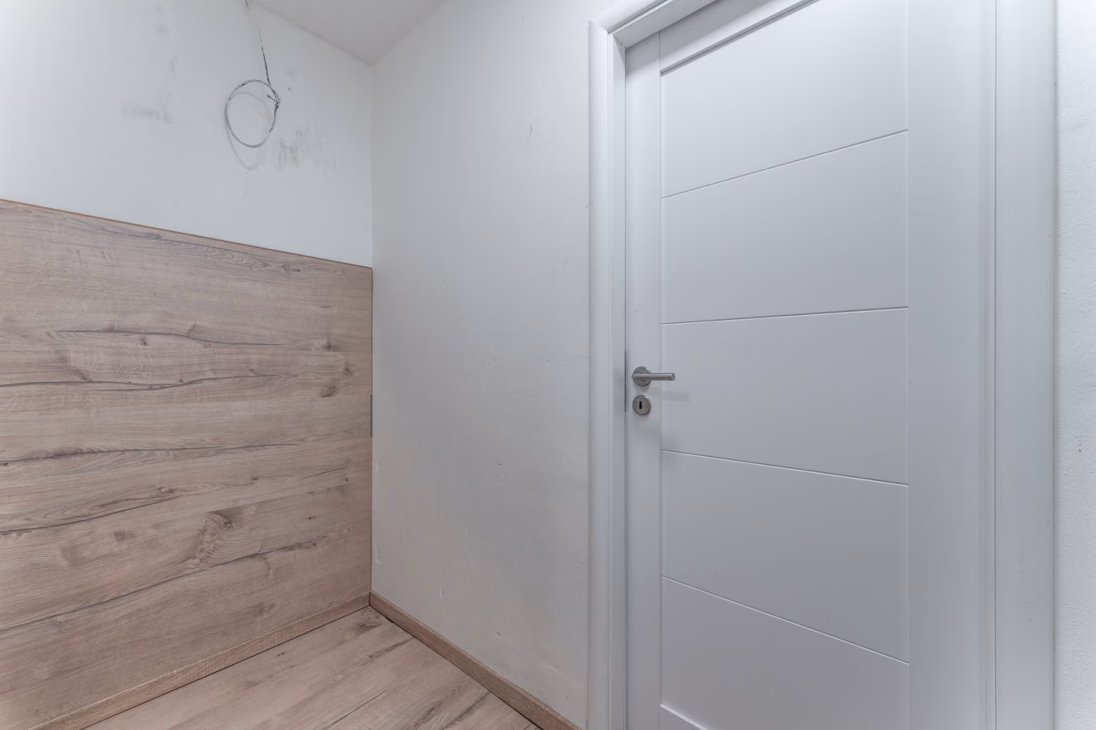 Prostor pro případnou vestavnou skříň či parkování kola, včetně možnosti přívodu elektřiny pro podsvícení nebo vybudovaní osvětlení. V tomto prostoru lze umístit i druhou skříň v případě, že velkorysou šatnu v navazujícím pokoji budete potřebovat jako dětský pokoj.