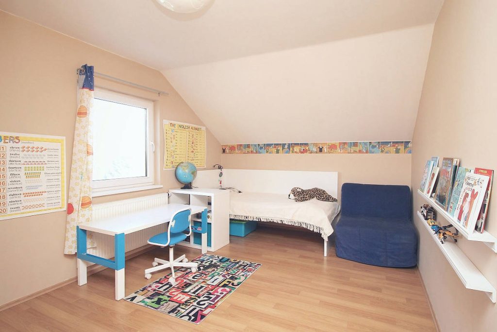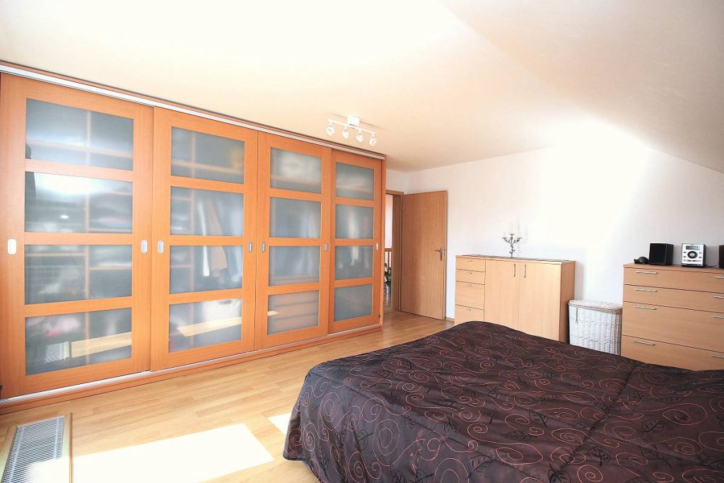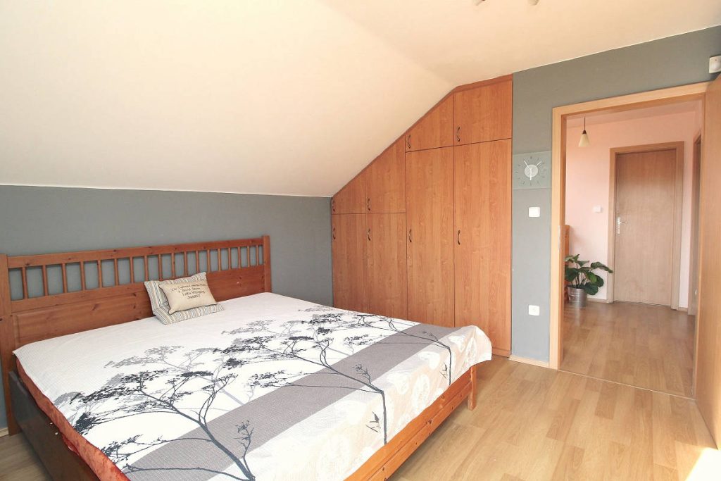 - Druhé podlaží tvoří prostorná ložnice se vstupem na balkón s výhledem do krajiny, dětský pokoj s úložnými prostory, pokoj pro hosty, koupelna s vanou, sprchou a toaletou.
