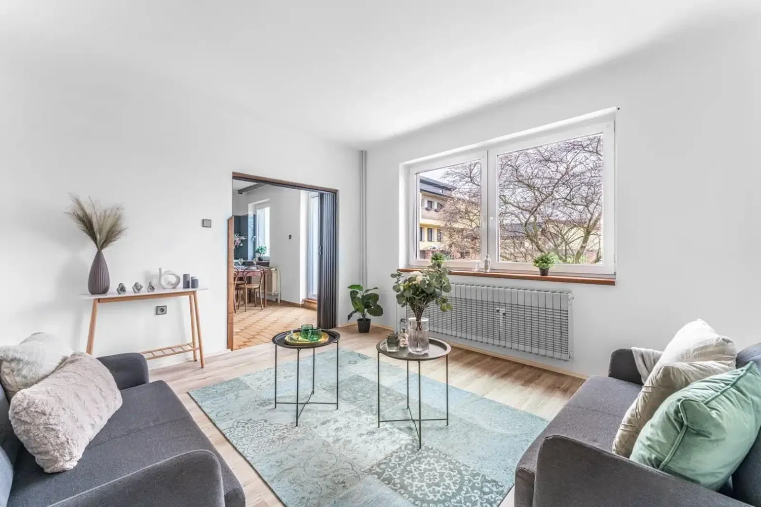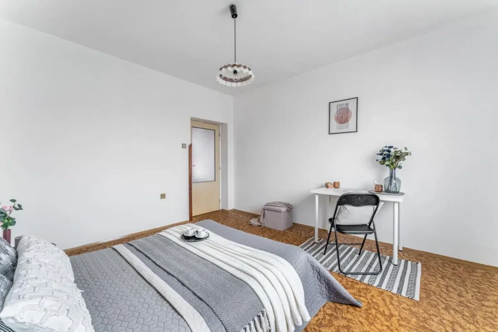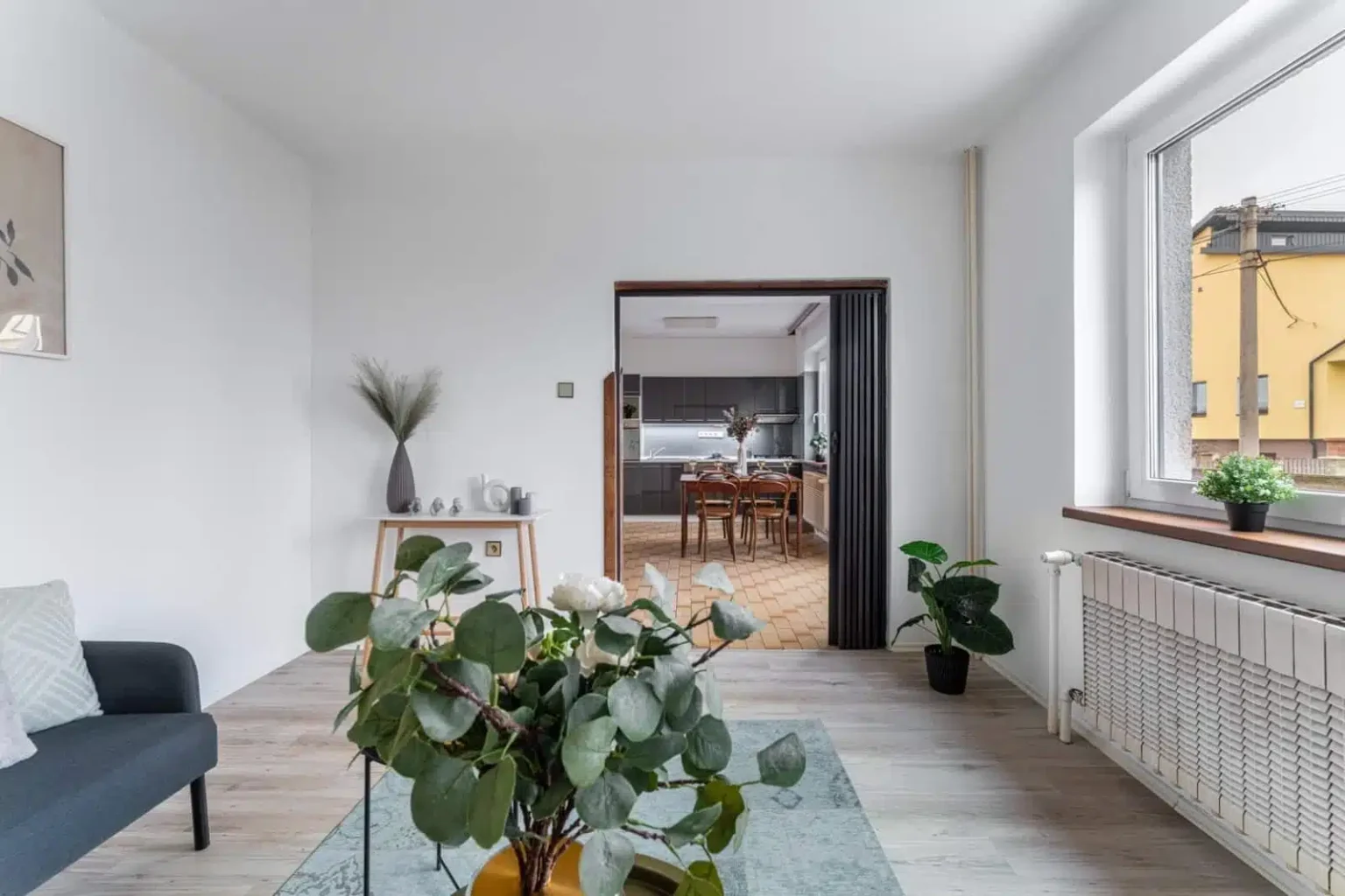 Obývací pokoj byl v předchozích letech zmenšen na úkor vybudování šatny v chodbě. Pokud zatoužíte po původních 26 m², sádrokartonová příčka nebude velkým soupeřem.