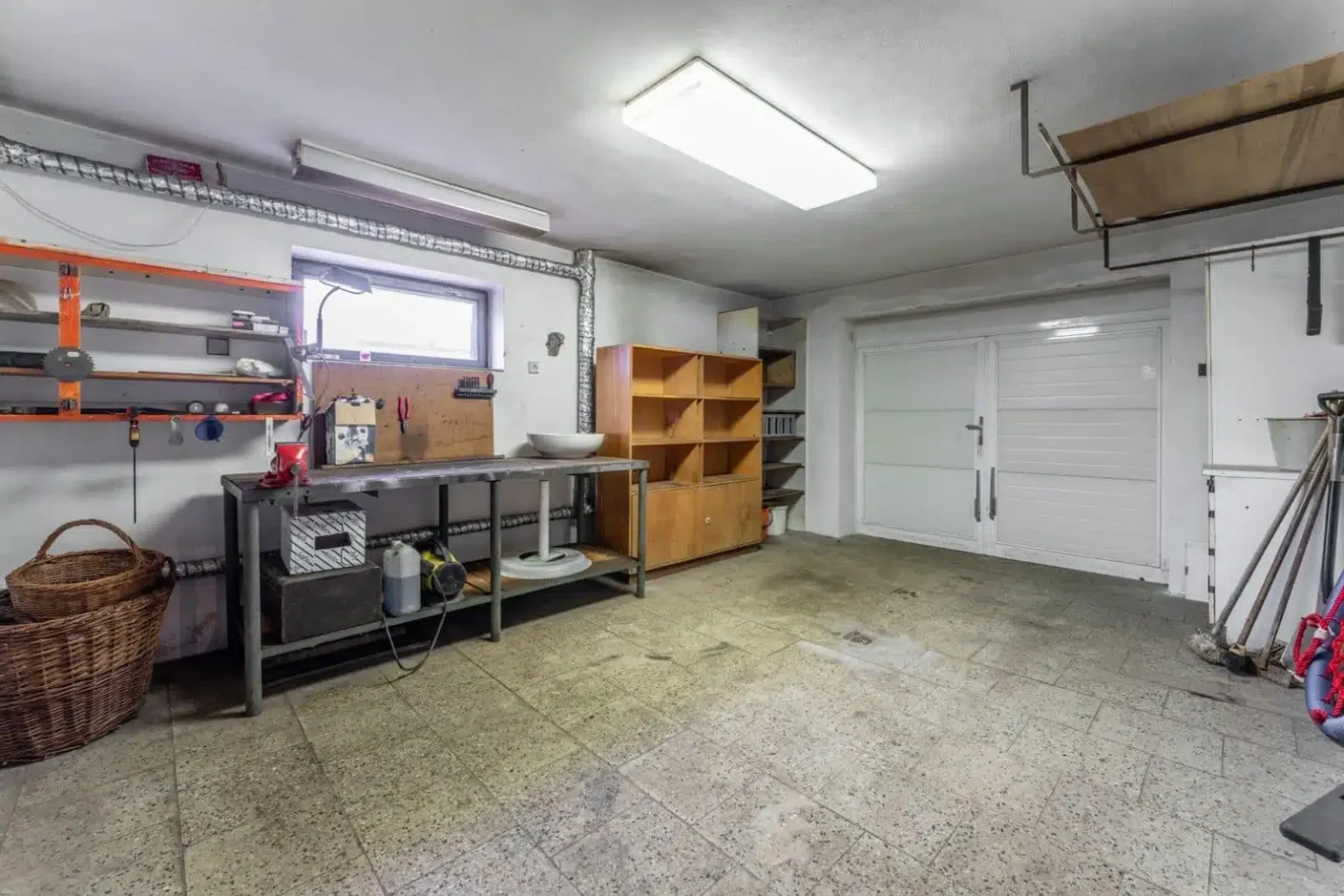 Suterén je rozdělen na několik částí. Podrobný přehled získáte díky plánkům. Motoristi si přijdou na své, jak velikostí, tak perfektním příjezdem do garáže, která v současnosti potřebuje k otevření vaše ruce.