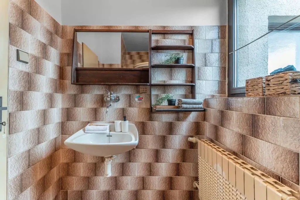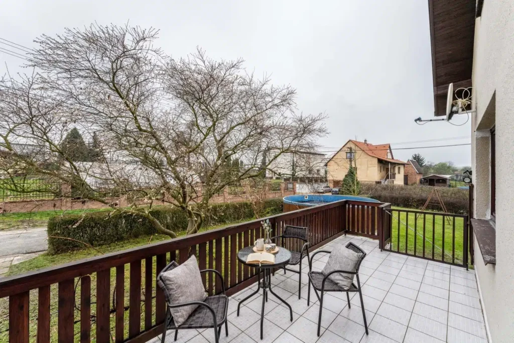 Dvojice koupelen je rozdělena podlažím. Díky tomu přijdete o souboj při ranní hygieně. Ušetřené minuty můžete věnovat třeba kávě na terase.