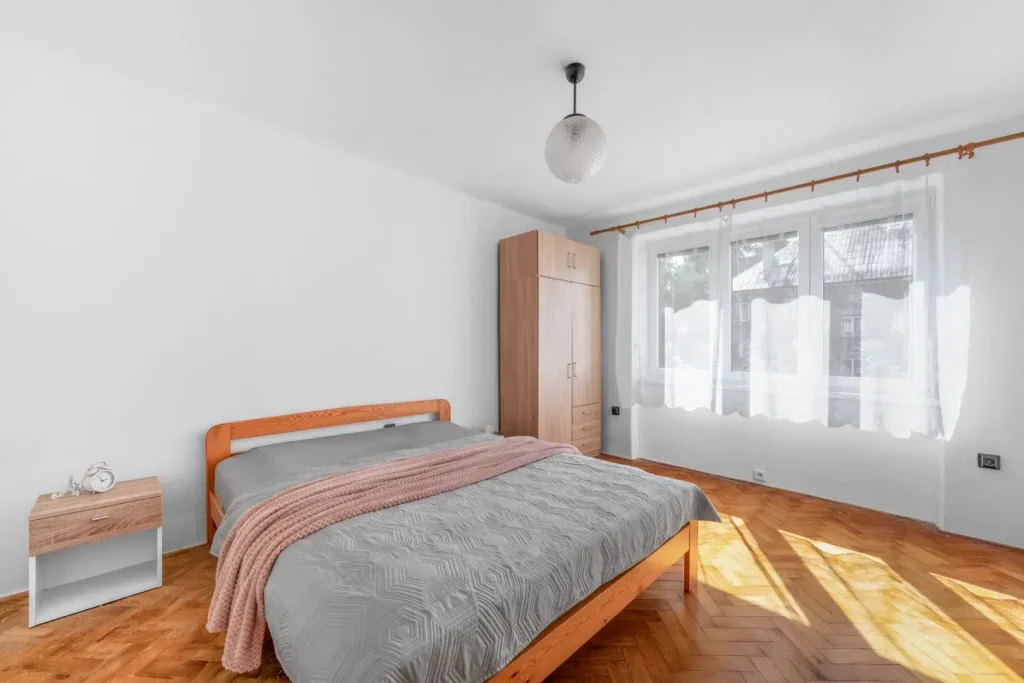 Ložnice má pravidelný tvar, díky čemuž nabízí variabilní uspořádání. Trojice oken zajišťuje dostatek světla. Prostor je zároveň vhodný i pro vytvoření dětského pokoje s pracovním koutem.
