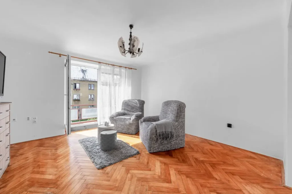 Hlavní obytná místnost poskytuje přímý vstup na prostorný balkón, ideální pro posezení či relaxaci. Celý byt prošel postupnou rekonstrukcí a je ve výborném stavu, bez nutnosti dalších investic.