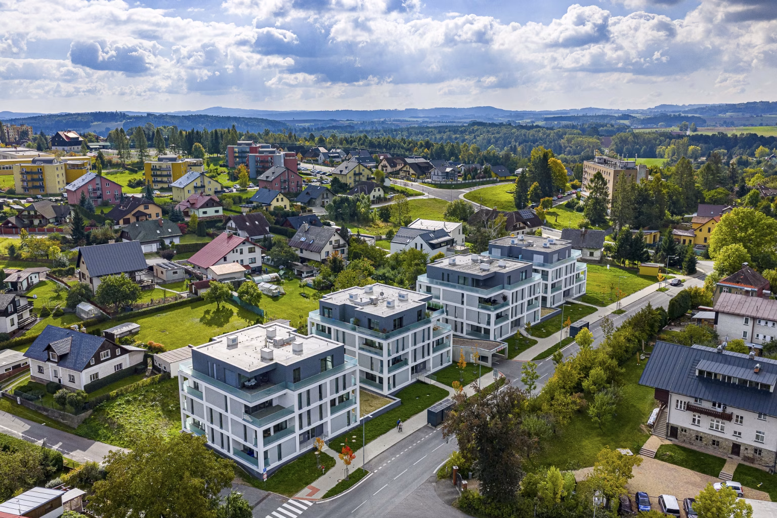 Součástí projektu je čtveřice moderních bytových domů s podzemní garáží. Nabídka zahrnuje byty 2+kk a 3+kk v různých velikostech, takže si vyberou jak ti, kdo hledají menší apartmán pro rekreaci, tak i rodiny, které chtějí plnohodnotné bydlení.